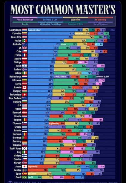 Lokvani wishes all its readers a very Happy Thanksgiving!------------------------------------------------------------------------------------In majority of the countries, the most common Master's Degree is in Business & Law, except for Japan and Sweden where it is in Engineering.