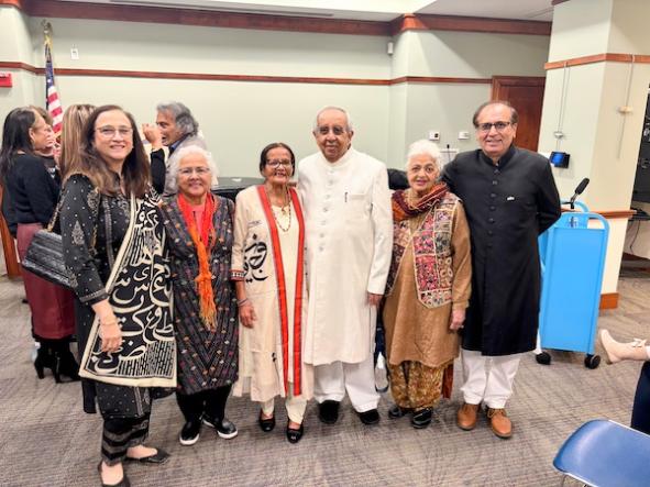 The event drew a full house—with guests even standing along the walls—and a lively online audience from Pakistan, India, Australia, Canada, Europe, and across the U.S. The program paid tribute not only to the book, but to a man whose life has been deeply intertwined with keeping Urdu alive in New England for nearly half a century. A Heartfelt Opening The program began with a brief prayer by Mrs. Homaira Kirmani, whose grace and warmth set the tone for the afternoon. Many in the gathering acknowledged that her steady support over decades has made much of the author’s literary work possible. Grandchildren—Sophie Ponda, Nadia Chohan and friends Noor Shah, and Nasr Shah—managed the book table, handing over pre-reserved copies that had been lovingly personalized by the author himself. Their presence brought an intimate family warmth to the event. A Tribute from Family In his role as the emcee, Syed Ali Rizvi welcomed the audience and shared context about the book’s creation, its historical value, and its tri-lingual accessibility—Urdu script, Urdu transliteration, and English translation. Rizvi then invited the Kirmani family to the stage to present a plaque of appreciation to Mrs. Homaira Kirmani. Her daughter Mishloo Kirmani, who had traveled from California for the event, read the inscription—a moment that brought long applause and visible emotion across the room. An Intellectual Opening by Ameek Ponda The author was introduced by Ameek Ponda, a respected tax law expert and a thoughtful voice in the South Asian community. Mr. Ponda reflected on Maarij Kirmani not only as a father-in-law but as an intellectual companion who cultivated a literary environment in Boston long before it was fashionable. He drew connections to classical poets, quoted verses fitting for the occasion, and reminded the audience that the Kirmani grandchildren will one day take pride in the literary legacy their grandfather has preserved. The Author Speaks: Stories, Laughter, and History Maarij Kirmani then took the stage in three short segments, each followed by comments from the audience. He gave an overview of how the book came to be—a culmination of decades spent hosting and engaging with literary legends, many of whose candid conversations, jokes, and private reflections appear in the book for the first time. He read from: · Unpublished chapters · His celebrated short story “Ek Lamhe Ka Khuda” · A humorous piece about the complications of marriage, divorce, and remarriage The audience responded with laughter, nostalgia, and admiration. Reflections from Scholars & Community Voices Several respected members of the community spoke briefly, appreciating the book and the author: · Mr. Irfan, visiting from Canada with his wife, shared heartfelt memories of his decades-long friendship with Kirmani and humorously gave credit to Mrs. Kirmani for “making all of this possible.” · Mr. Aami Jafri, son of the renowned poet Ada Jafri, reflected on his early impressions of the book and called it “a valuable contribution to the documented history of Urdu in America.” · Imran Kidwai reminisced about finding comfort and guidance in Boston because of the Kirmani family’s affection and mentorship. · Prof. Razzaque Ahmad, a renowned dermatologist and a lover of Urdu, noted that he had cancelled another engagement just to attend, calling the book “a preservation of identity.” · Dr. Ghazala Alam highlighted how she has learned from Kirmani’s statesmanship and how the book captures memories that would otherwise be lost. · Prof. Deeba Husain spoke of the deep role Urdu played in her upbringing and pointed out the academic value of the book in its historical detail and accessible format. · Dr. Yogeshwar Dayal expressed his admiration for the effort put into documenting a literary movement in New England and said he looked forward to reading it fully. · Kumkum Dilwali, with her characteristic elegance, shared her enthusiasm for the book and said she would savor its nostalgic and historical richness. Comments flowed naturally throughout the afternoon, turning the launch into a community celebration of shared cultural memory. A Gesture of Giving The Kirmani family announced that all proceeds from the book will be donated to charitable causes. A suggested donation of $20 was mentioned, though guests were encouraged to contribute any amount. Payments were accepted by check, Venmo, or Zelle. Celebrating Language, Legacy, and Community The event was recorded by Ali Rizvi and Sachin Gupta (a PhD scholar at UMass and an emerging poet), with photographs also contributed by both. As the program concluded, Samia Kirmani delivered a warm vote of thanks, sharing endearing stories from her childhood about poets who visited their home and the lively literary atmosphere created by her parents. About the Book “Fragrance of Urdu in Boston” is a unique tri-lingual work capturing the evolution of Urdu in the New England region. It blends memoir, reportage, and translation, and offers readers—scholars, students, and enthusiasts alike—a rare window into the Boston-based gatherings that once hosted giants like Faiz, Faraz, Parveen Shakir, Kaifi Azmi, and many others. You may also access this article through our web-site http://www.lokvani.com/ |