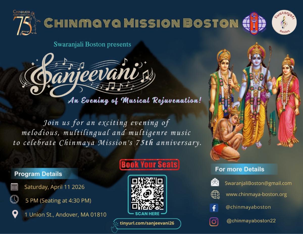 Press Release 02/06/2026 Sanjeevani by Swaranjali Boston Swaranjali Boston is proud to present this musical evening this April ... to mark Chinmaya Mission's 75th Anniversary! Please mark your calendar and reserve your seats! Sri Thyagaraja Aradhana Gita Mahotsav 2026 Maha Shivaratri Puja & Rudrabhishekham Gita Chanting Competition 2026 You may also access this article through our web-site http://www.lokvani.com/ |