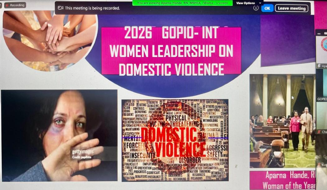 Press Release 03/05/2026 GOPIO Women Council Hosts Webinar on Understanding Action Against Domestic Violence The Women’s Council Wing of the Global Organization of People of Indian Origin (GOPIO) hosted a webinar on February 23rd titled , “Understanding Action Against Domestic Violence .” Held virtually, the webinar brought together speakers and participants from the USA, Canada, India, Australia and New Zealand. The panel was put together by GOPIO Women’s Council Chair Charu Shivakuamr from Southern California. GOPIO Chairman Dr. Thomas Abraham, welcomed participants and highlighted GOPIO's role in advocating for the Indian diaspora and its achievements in promoting dual nationality. Dr. Abraham said that violence against women was very important issue for the Diaspora community and need service provider organizations all over the world. GOPIO Women’s Council Chair Shivakumar introduced the session's purpose, emphasizing the need to raise awareness and provide solutions for domestic violence. GOPIO’s Global Ambassador Nami Kaur discussed her personal commitment to women's rights and the importance of extending educational efforts globally. The webinar aimed to educate and inspire action against domestic violence, with a panel of experts set to provide insights and recommendations. Photo: GOPIO Officials and Speakers at the Webinar titled Understanding Action Against Domestic Violence, Top Row: from l. to r.: Charu Shivakumar, Dr. Thomas Abraham, Aparna Hande; Middle Row: from l. to r.: Zoya Salim Kara, Jayashri Chintalapudi and Shefali Mehta; Bottom Row: from l. to r.: Nami Kaur, Kumu Gupta and Kewal Kanada The first speaker Ms. Zoya Salim Kara, Team Leader for Ethnic Services at Sahaayta in Auckland, New Zealand, presented on family harm, explaining that New Zealand refers to domestic violence as "family harm" to acknowledge the broader impact on family members. She discussed tools like the Power and Control Wheel and the Wheel of Equality, which help assess and educate about healthy and unhealthy relationships. Zoya highlighted specific issues faced by Indian communities, such as honor killings, dowry-related violence, and the use of immigration status as a tool for control. She emphasized the importance of distinguishing between arranged and forced marriages and discussed cultural differences in expressions of anger and violence. Zoya also discussed the prevalence of domestic and elder abuse in New Zealand, highlighting the importance of legal rights, community support, and available resources such as the 0800-refuge number and various agencies. She emphasized the need for awareness and action against violence, regardless of gender or cultural differences. GOPIO Women’s Council Co-Chair Kritilata Ram from Mauritius shared insights on their local response to domestic violence, including a quick reaction system involving the police and support agencies. Boston native Ms. Kumu Gupta spoke about her work in the U.S., including a phone drive program for victims of domestic violence and efforts to raise awareness about deepfake images. GOPIO Health Council Co-chair Aparna Hande, a survivor and educator, planned to share her personal journey and discuss the signs and symptoms of domestic violence, but technical difficulties interrupted her presentation. GOPIO International Women’s Leadership on Domestic Violence Aparna shared her personal experience of overcoming domestic violence and her subsequent work helping other survivors, describing how she created a model family that sheltered 25 people over the years. She emphasized the importance of breaking the silence around domestic violence and creating safe spaces for survivors. GOPIO Women’s Council Co-Chair Jayashri Chintalapudi, a former lawyer licensed in India and currently an entrepreneur, shared the story of a friend who was murdered by her husband due to domestic violence, highlighting the need for awareness about the various forms of abuse and the dangers of leaving an abusive relationship. Aparna and Jayashri called for action to prevent domestic violence and support survivors, with Aparna advocating for GOPIO's role in this effort and Jayashri emphasizing the importance of recognizing and addressing the signs of abuse. The meeting focused on raising awareness about domestic violence and exploring actionable steps to support victims. Ms. Rachana Srivastava shared a poem highlighting the importance of addressing domestic violence, and Charu emphasized the need for education and collaboration across organizations. Kumu suggested listing organizations that assist victims of domestic violence on Indian consulates' websites, while Ms. Shweta Goyal, a researcher in Australia, discussed developing frameworks to support multicultural women facing stigma. The participants discussed potential collaborations and the role of GOPIO in supporting these efforts globa The meeting focused on discussing domestic violence prevention and intervention services for the South Asian community in the United States. The service organization Saahas from Southern California explained their organization's work in preventing domestic violence through community-based initiatives, including home visits, financial empowerment, and cultural sensitivity. GOPIO Associate Secretary Vatsala Upadhyay, former president of My Family Services in the Detroit, Michigan area highlighted the need for better collaboration between organizations and suggested providing information about available resources to immigrants during visa processing. The discussion emphasized the importance of culturally competent services and data-driven approaches to address domestic violence in the South Asian diaspora. Another participant shared her experience as a survivor of domestic violence, highlighting the ongoing nature of abuse even after separation or child custody arrangements. She emphasized the lack of resources and support available to victims and criticized organizatio