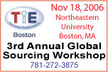 TIE Boston's Third Annual Workshop on Global Sourcing dealing with Financial Services, High tech Manufacturing, Biotech and Telecom/ Networking will be held at Northeastern University on November 18th, 2006. [more] |