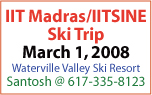 IIT Madras and IITSINE invite you and your family for a fun filled day to a ski, snowboard, cross-country ski and snow shoe trip at Waterville Valley, NH on March 1st. [more] |