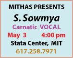 Catch up, register and purchase tickets for the events during this upcoming fortnight including S. Sowmya, Shraddha Nagraj, Amma's NE Spring Garba and Dandiya, Sugato Nag, Hindu Heritage Day 2009, TiECON East, Fancy Dress Competition and Nayaki. [more] |