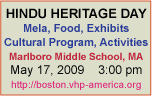The Annual Hindu Heritage Day will be held on Sunday, May 17, 2009, from 3 pm to 8 pm at Marlboro Middle School in Marlboro, MA. [more] |