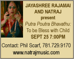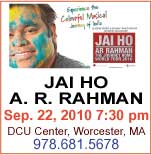 Catch up, register and purchase tickets for the events and concerts during this upcoming fortnight including An Evening with Malladi Brothers, Pandit Hariprasad Chaurasia, Laksharchana for Lord Sri Venkateswara, Shaadi Bazaar, Jai Ho-A.R. Rehman, Padmabhushan Dr. L Subramaniam, We For Hope Fundraiser, Pratham Boston Gala, Baba Shivanand - Healing and Meditation Workshops, and Boston Sargam. [more] |